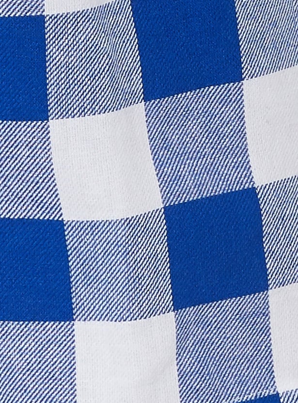 Stay cool and coordinated with this checked shorts set. The printed t-shirt features a classic round neck and half sleeves, while the checked shorts come with a drawstring waist and handy pockets for added convenience.