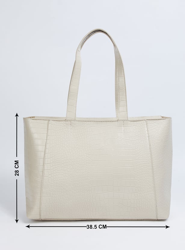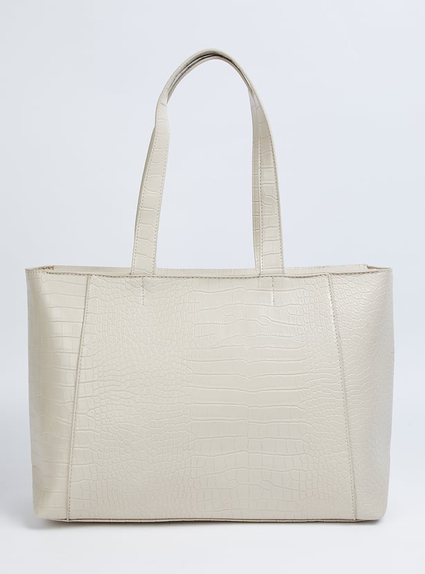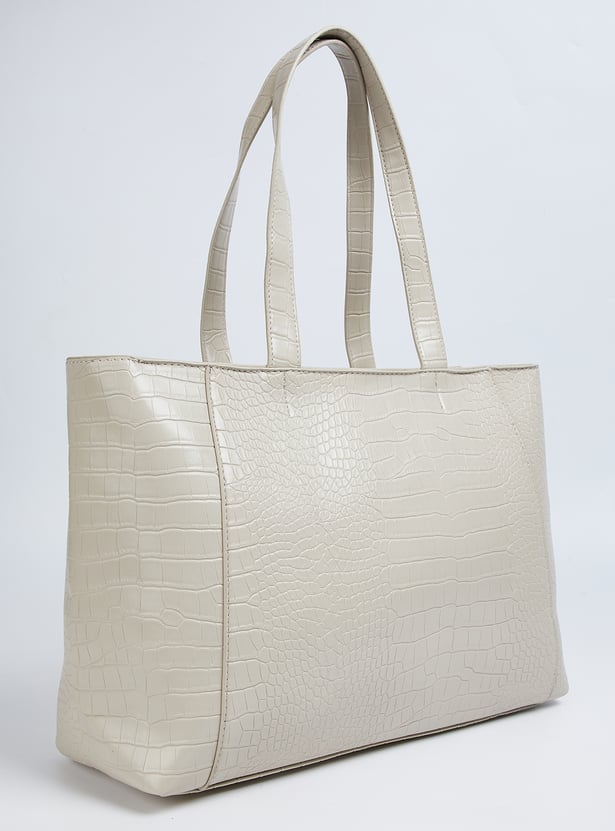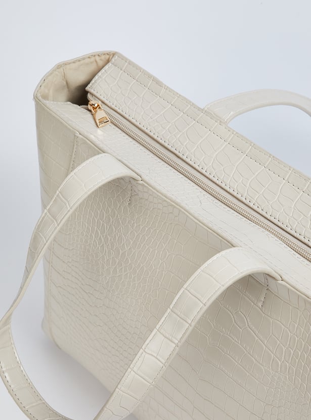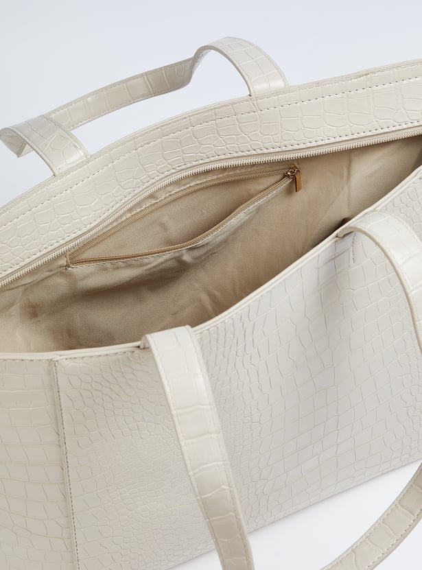 Elevate your accessory game with this shoulder bag, featuring a chic croc-embossed exterior and sturdy shoulder straps. The zip-top closure keeps essentials secure, while the main compartment with interior zip pockets offers practical organisation.