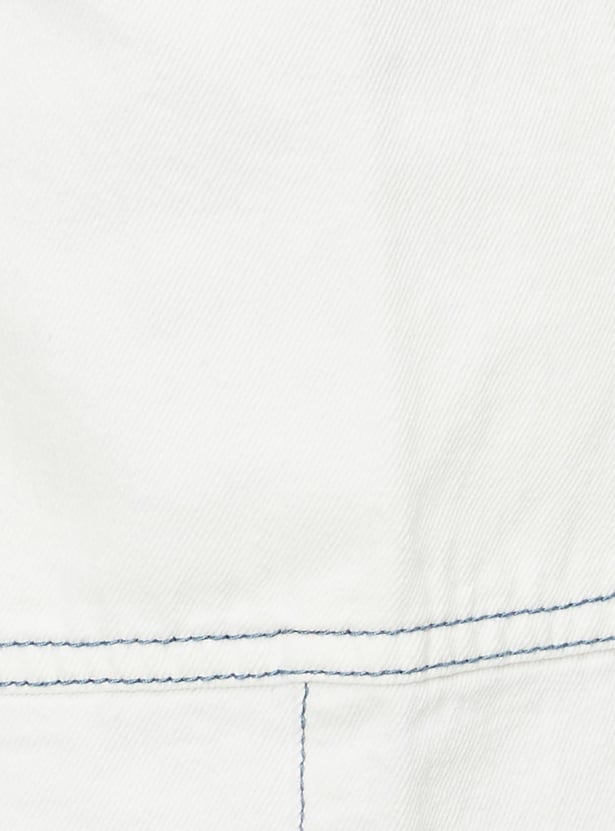 Refresh your style with this sleek denim mini skirt. Featuring a solid tone, utility pockets, a back welt pocket, a pencil profile, and a belt loop waist, it exudes chic sophistication.