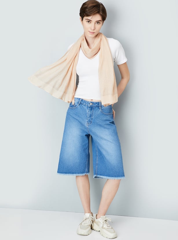 Enhance your outfit with this chic scarf, featuring an embellished accent that adds a touch of elegance and sophistication.