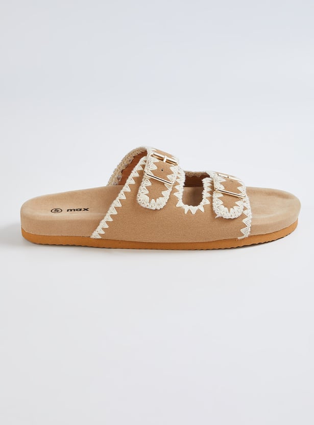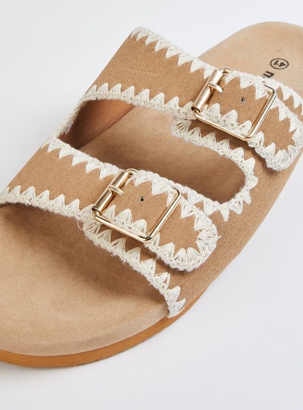 Step into style with these embroidered buckle flats. Designed with dual buckle straps and an easy slip-on fit for both comfort and flair.