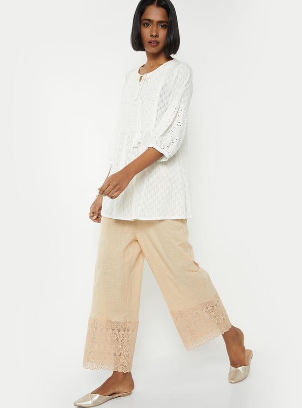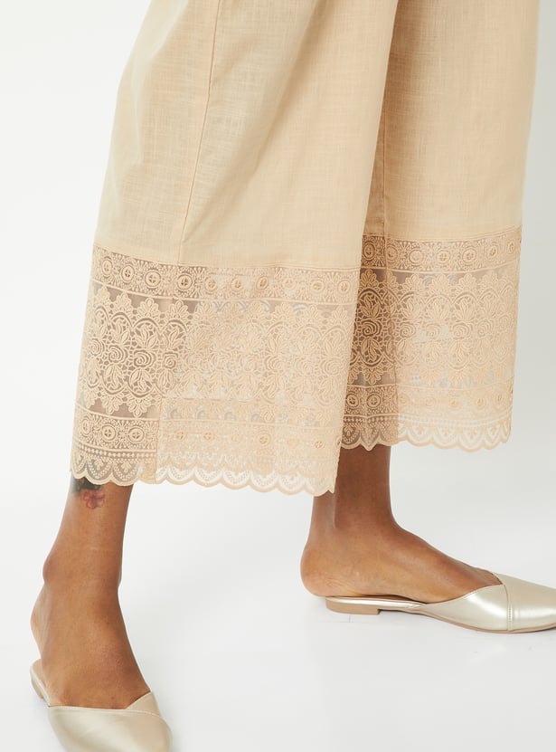 Women Embroidered Hem Palazzos