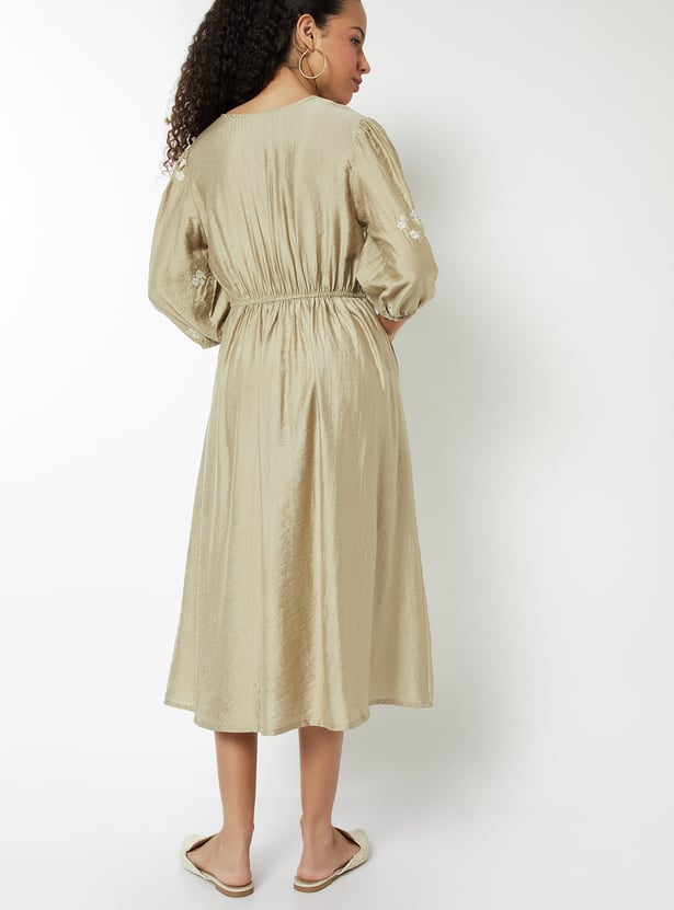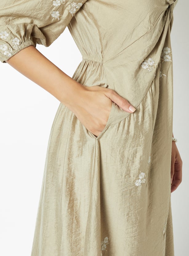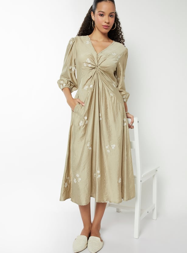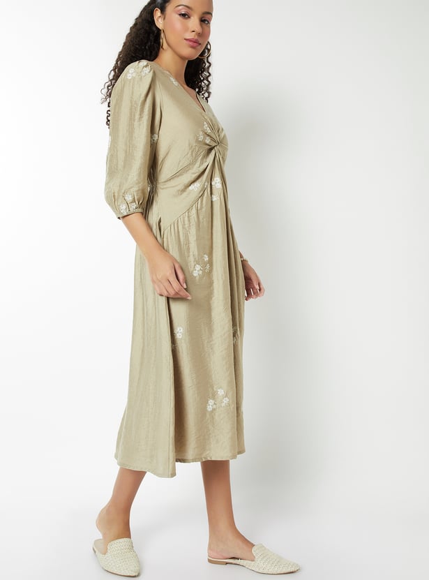 Women Embroidered Knot Midi Dress