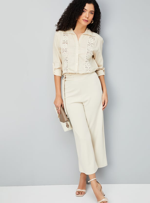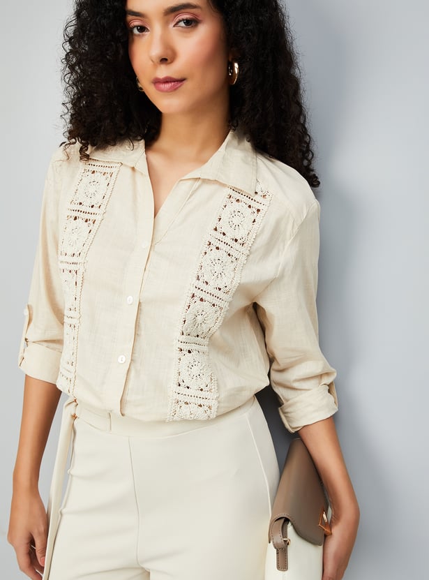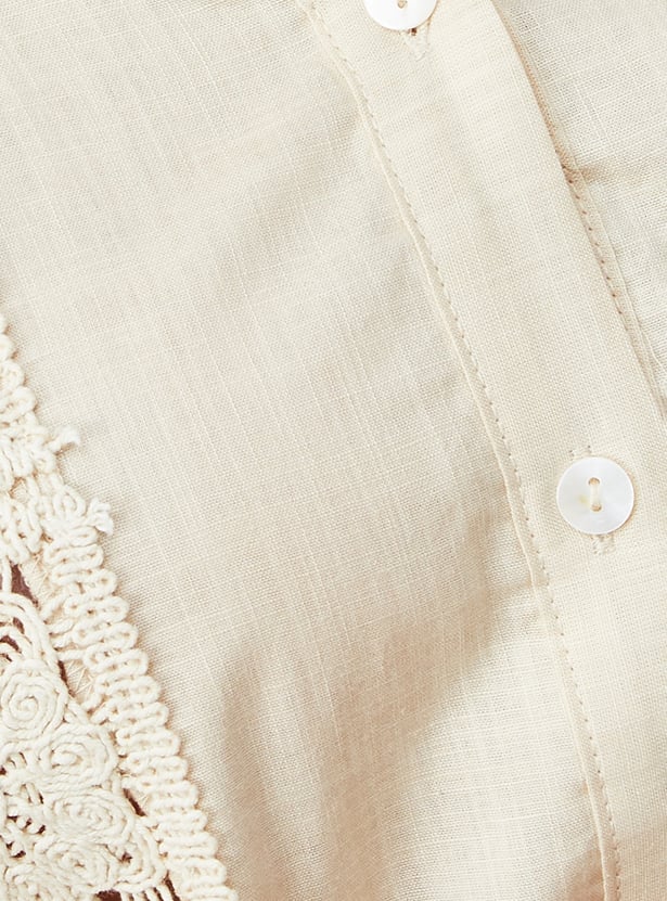 Stay effortlessly cool in this embroidered oversized shirt, designed with a spread collar, classic button closure, and full sleeves with button cuffs. The fit and embroidered detail bring a laid-back yet polished vibe to your wardrobe. Model Size :