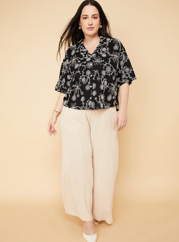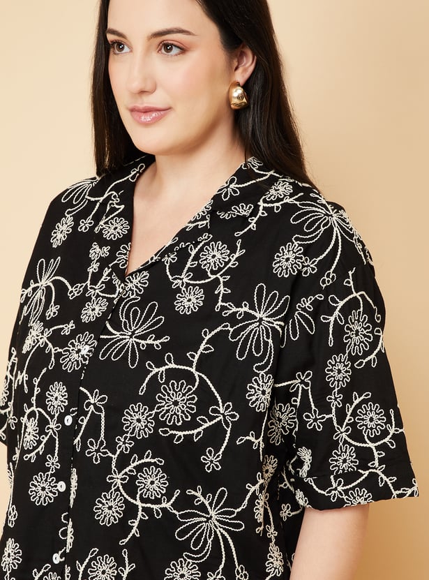 Edgy and versatile, this embroidered regular fit shirt is a timeless essential for effortless dressing. Featuring a resort collar, button placket, and half sleeves, it delivers a polished yet relaxed look. Model Size :
