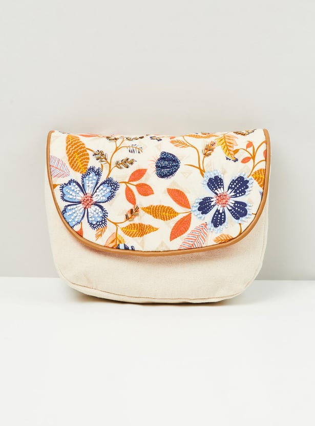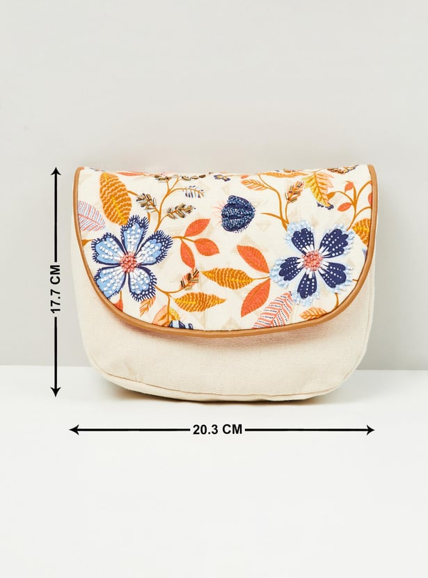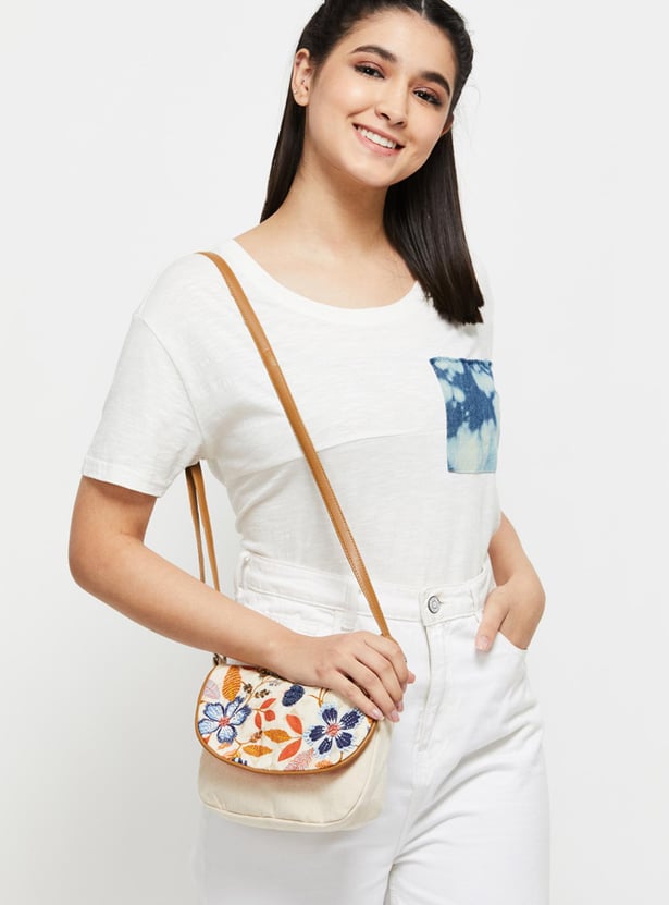 This sling bag is designed with floral embroidery all over featuring a snap button closure and adjustable strap detail is an ideal pick to amp up any of your everyday ensembles.