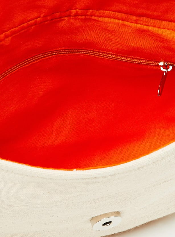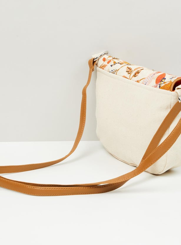 Women Embroidered Snap-Button Closure Sling Bag