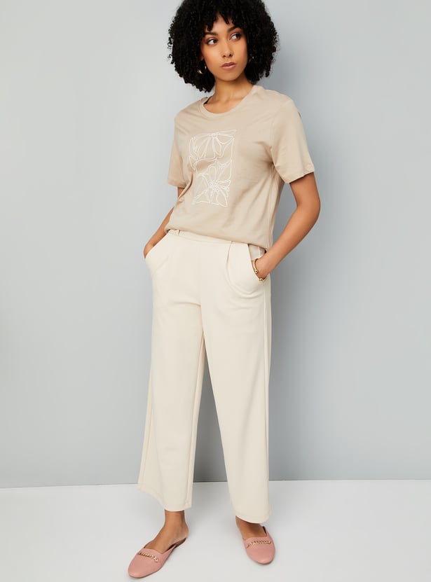 This t-shirt adds a charming touch to your everyday style with its soft embroidery and classic silhouette. Featuring a round neck and half sleeves, it's perfect for easy, all-day comfort. Model Size :