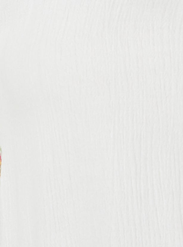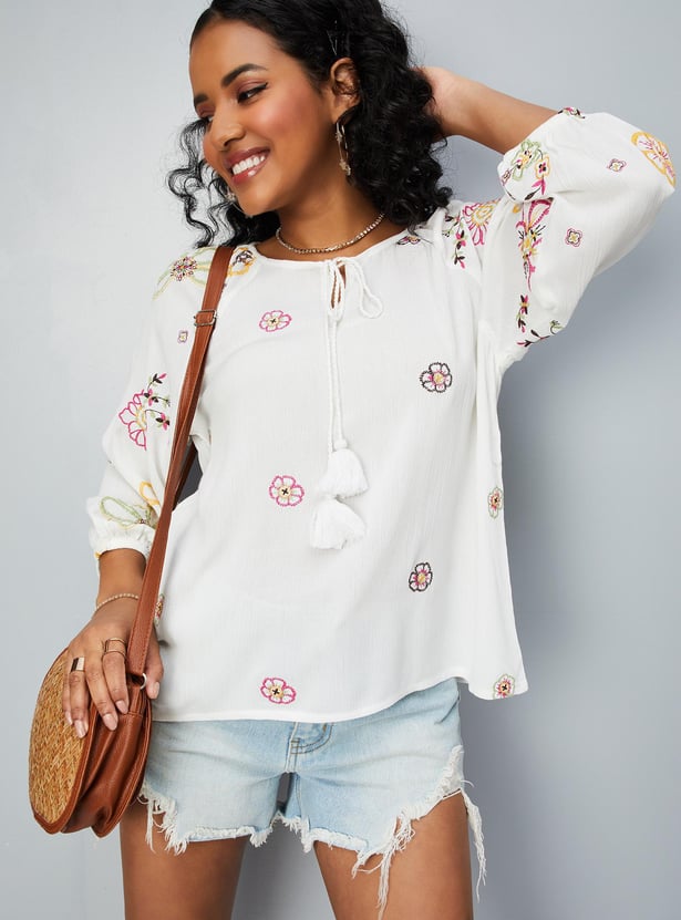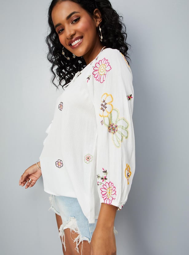 Women Embroidered Tie-Up Neck Tunic