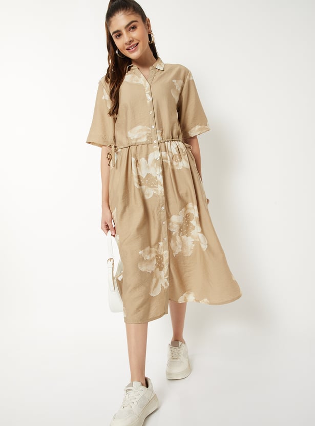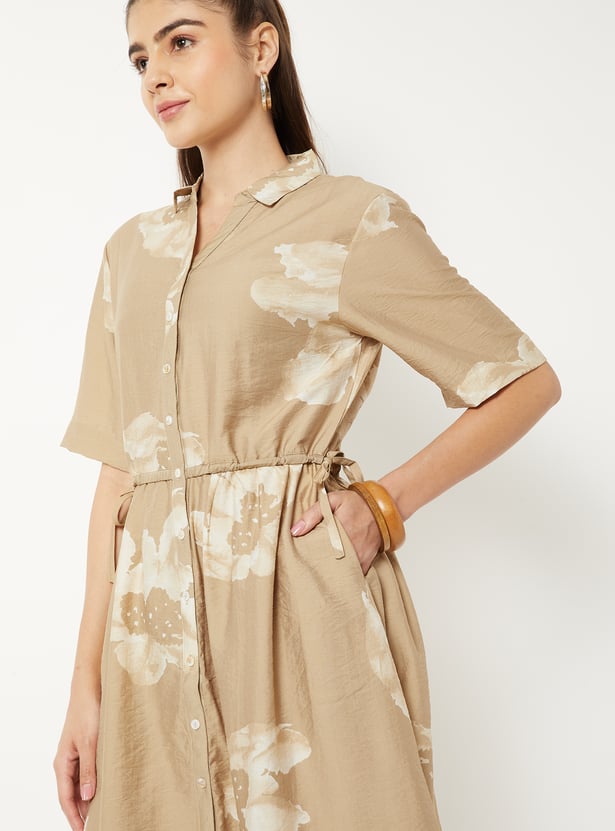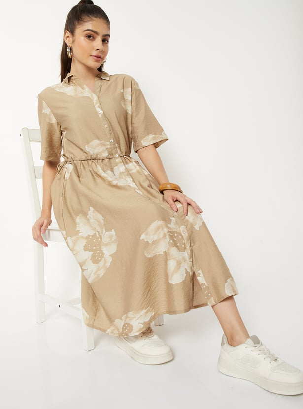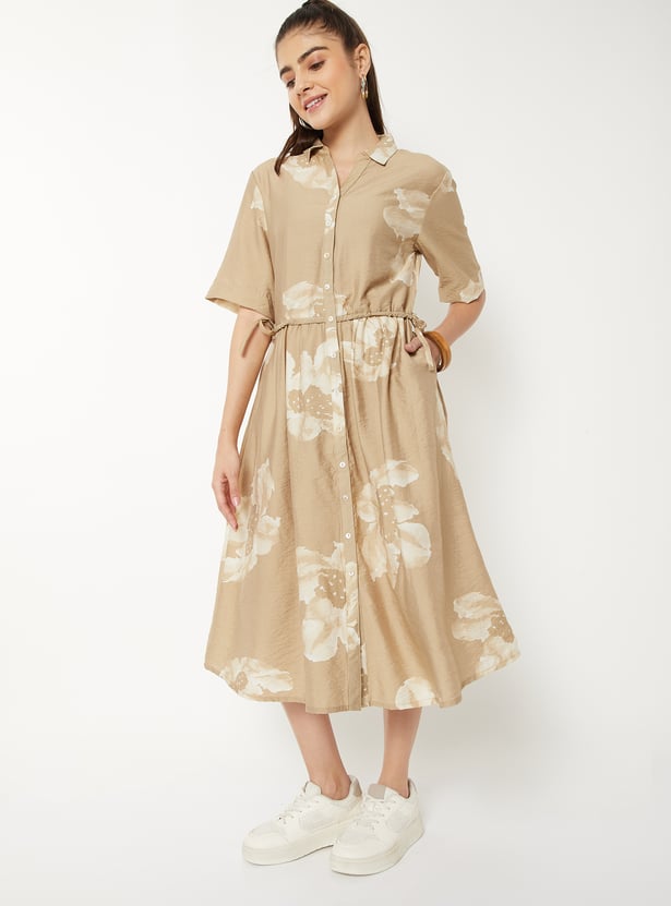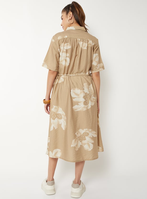 Women Floral Print Shirt Dress
