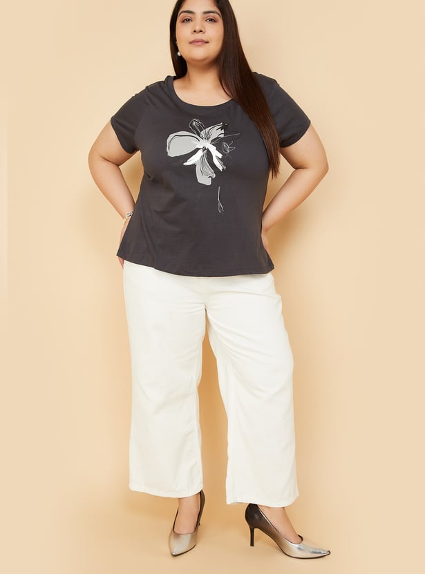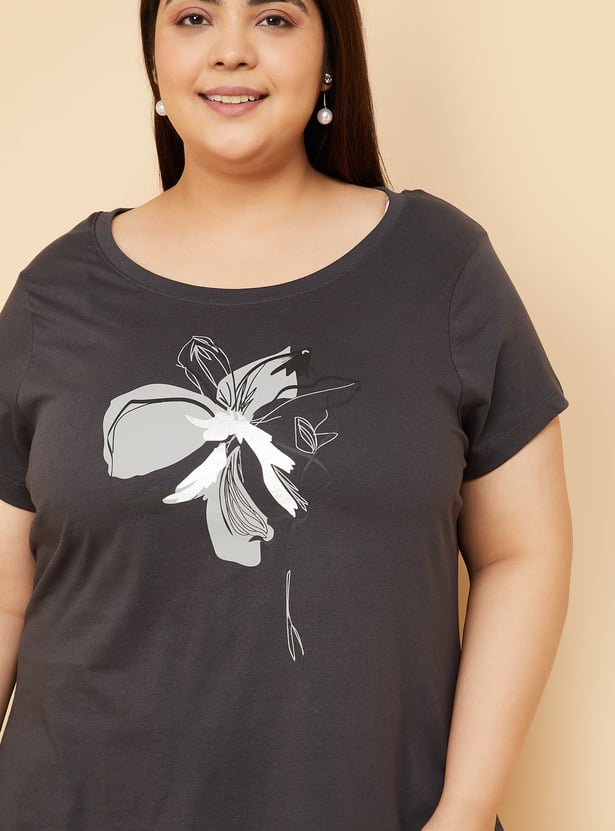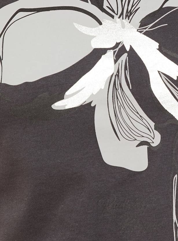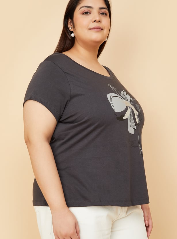 Bring a fresh vibe to your casual wear with this floral print T-shirt. Styled with a round neck and half sleeves, it offers all-day comfort in a relaxed silhouette. The floral print at the front adds a touch of charm and femininity. Model Size :