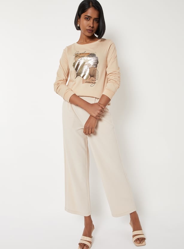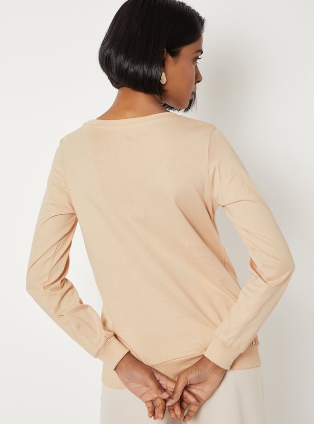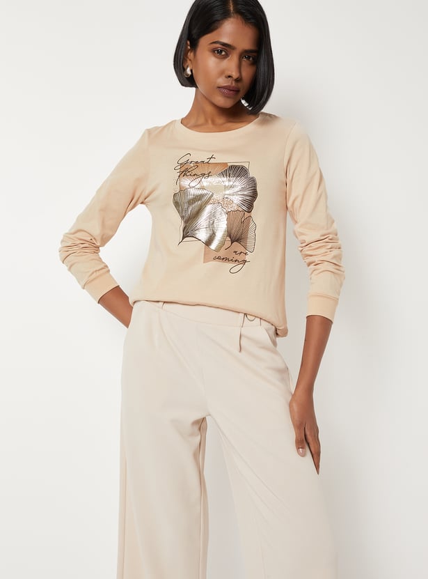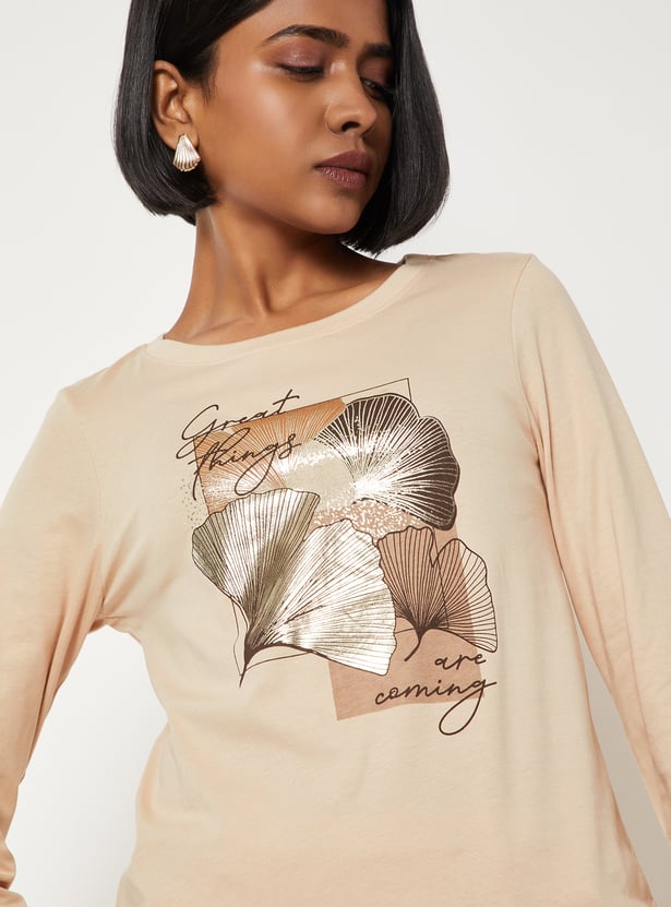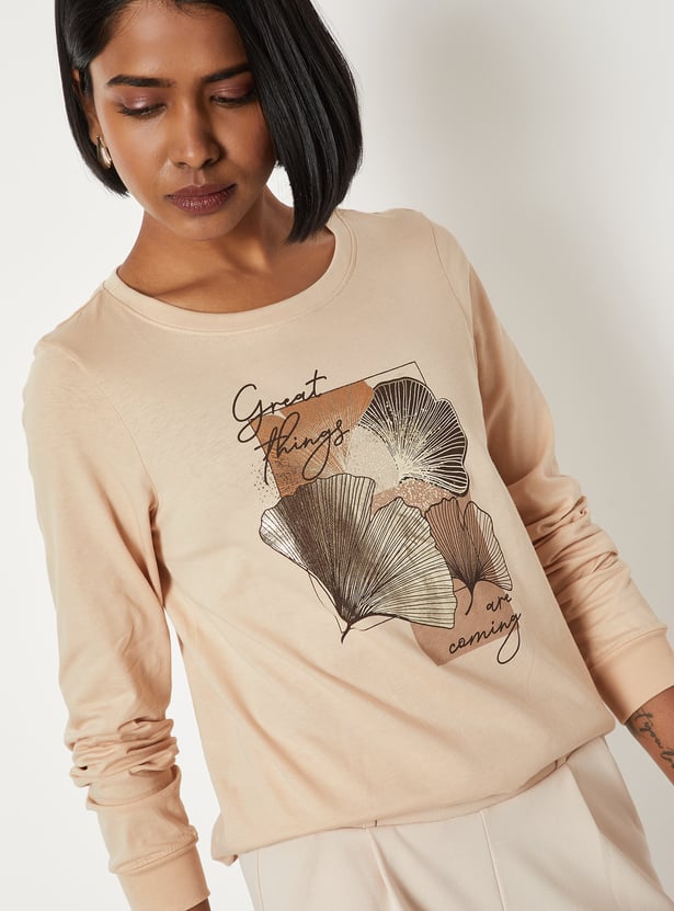 Make a statement with this graphic print full-sleeve T-shirt. Featuring a round neck and comfortable full sleeves, it combines casual ease with stylish flair. The bold graphic print adds personality to your everyday look.