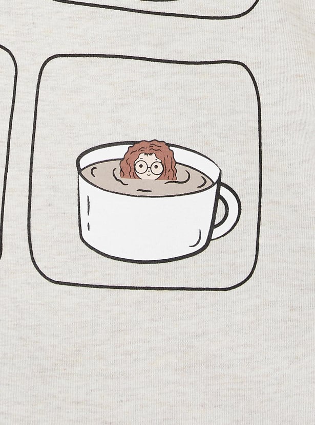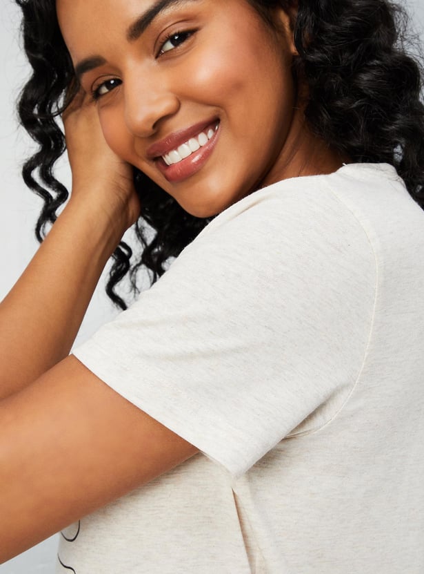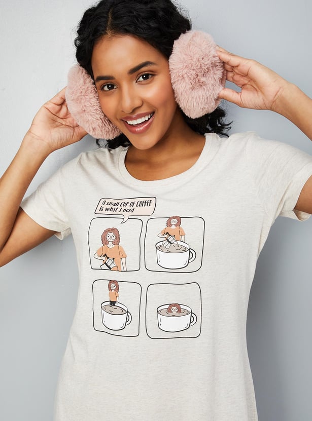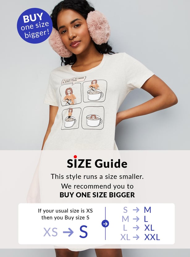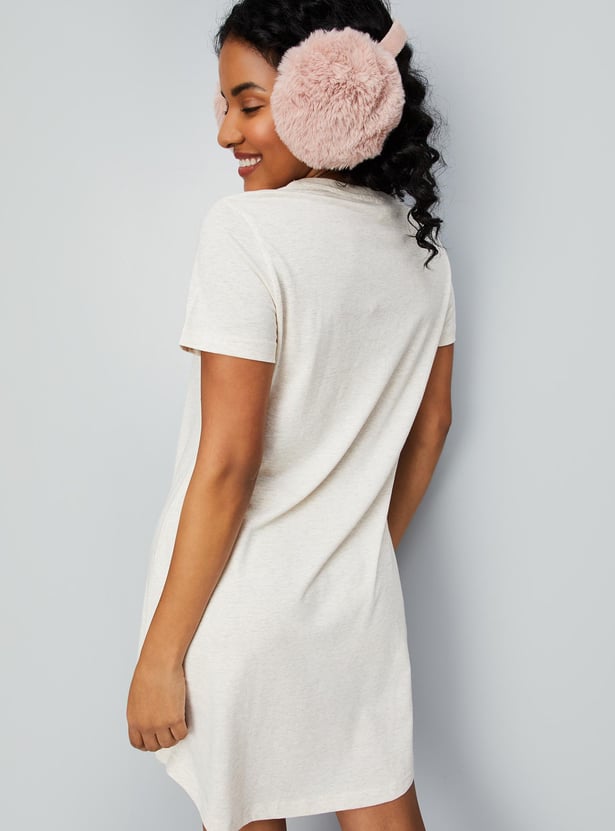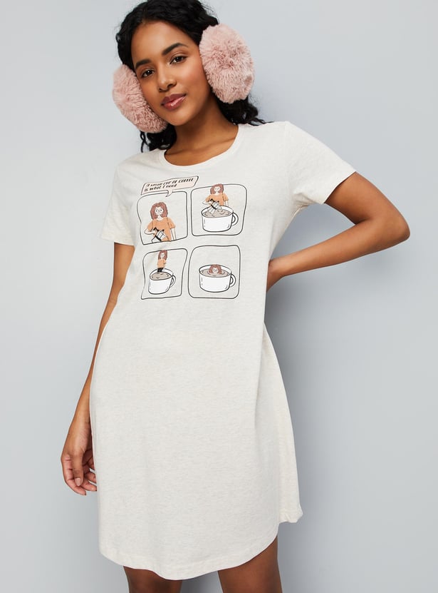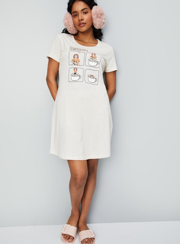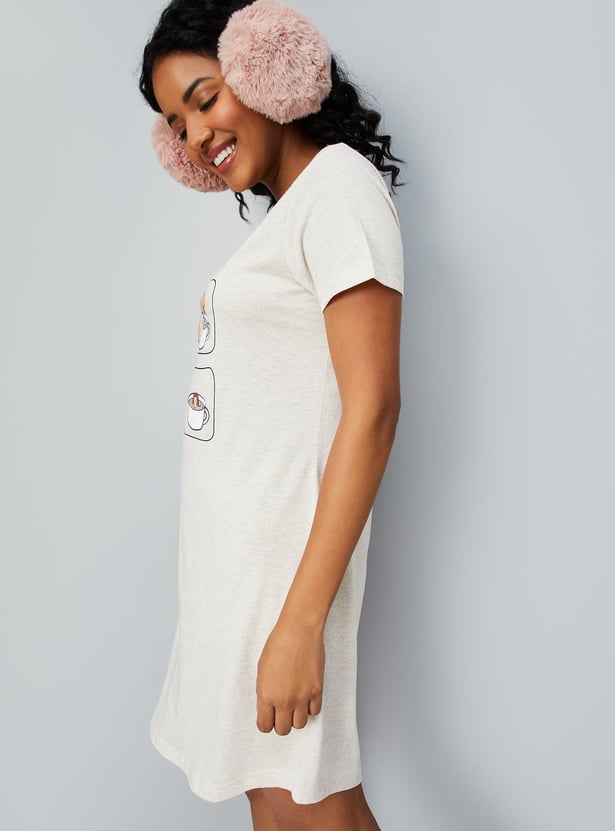 Relax and chill at your home with this chemise featuring a round neck, short sleeves, and a graphic print on the chest.