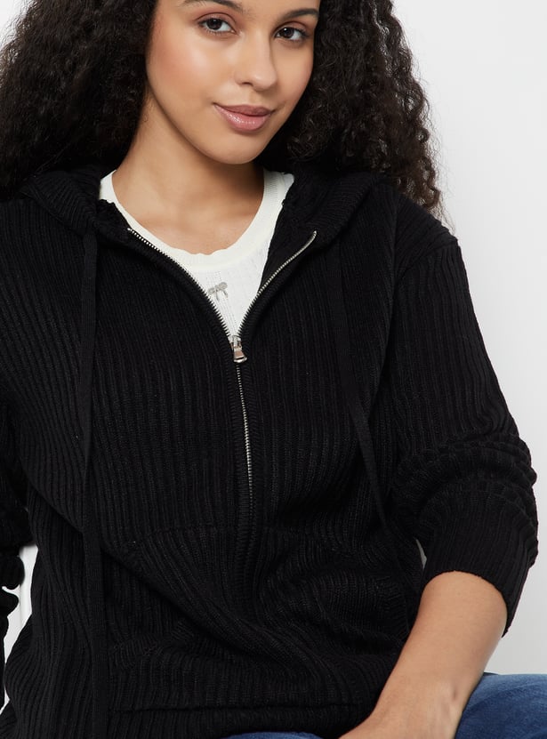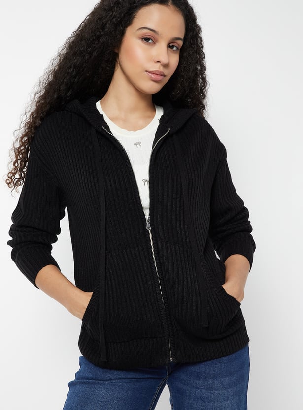 Women Knit Hooded Cardigan