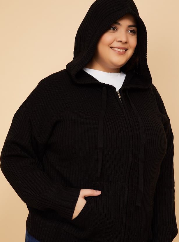 Women Knit Hooded Cardigan