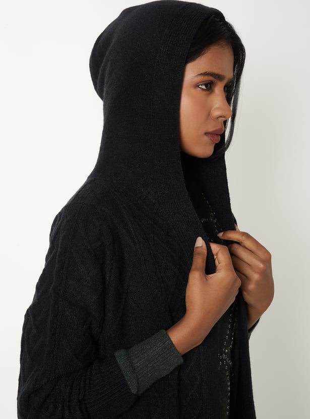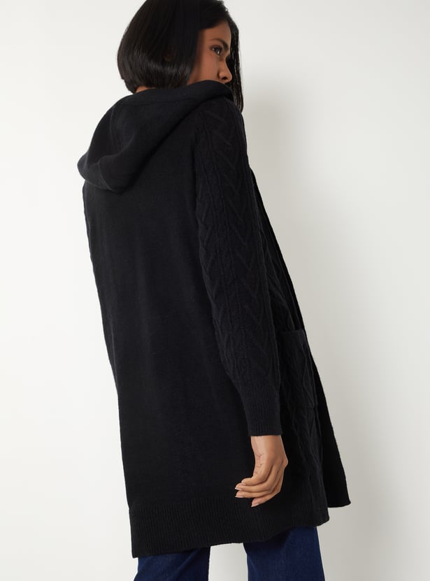 Women Knit Hooded Longline Cardigan