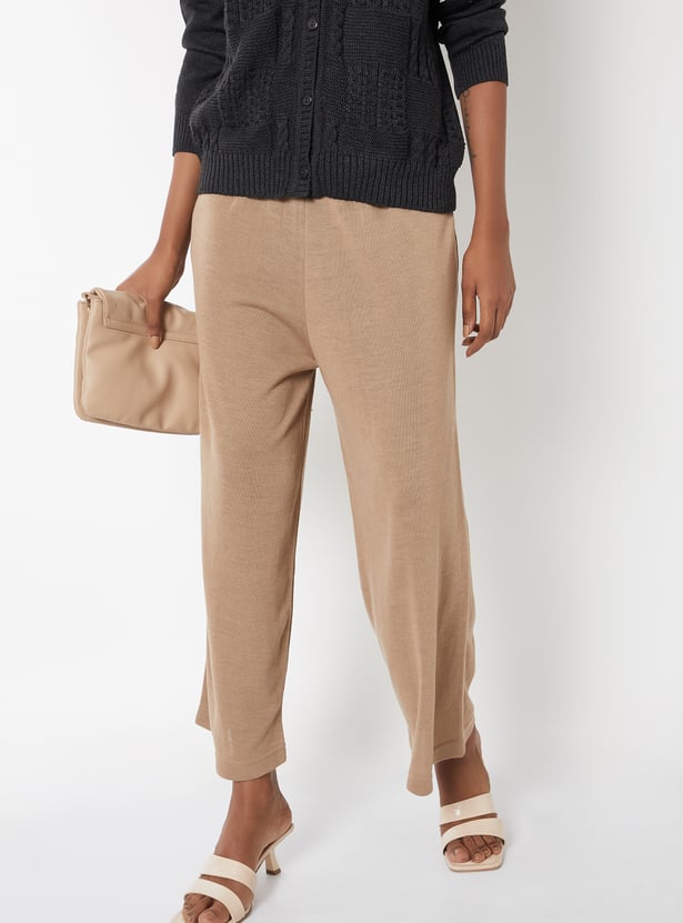 Stay cozy and stylish with these knit palazzos, designed for all-day comfort and ease. Featuring an elasticated waist, side pockets, they offer a relaxed fit and effortless movement—perfect for laid-back winter days.