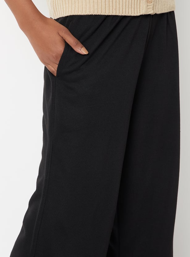 Stay cozy and stylish with these knit palazzos, designed for all-day comfort and ease. Featuring an elasticated waist, side pockets, they offer a relaxed fit and effortless movement—perfect for laid-back winter days.
