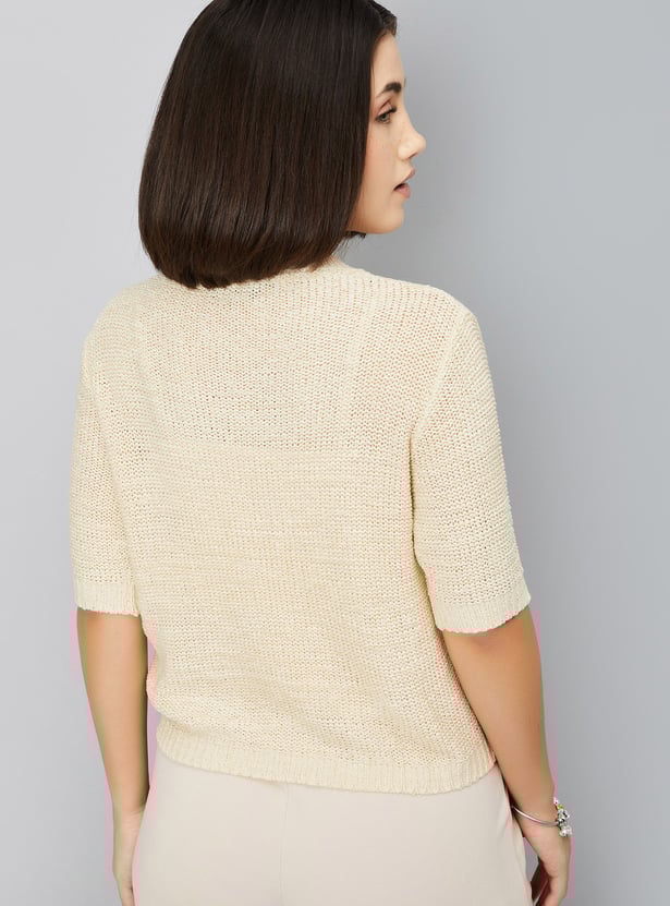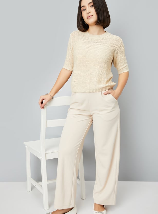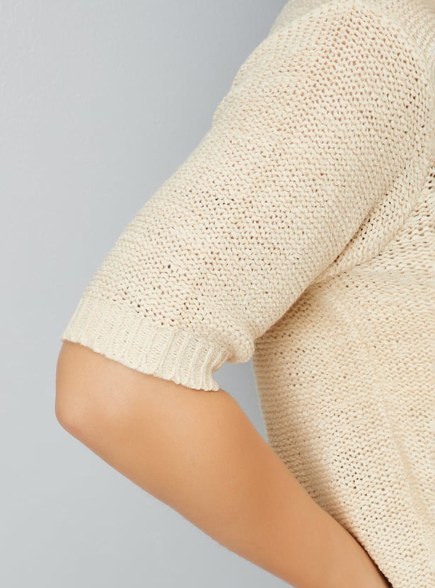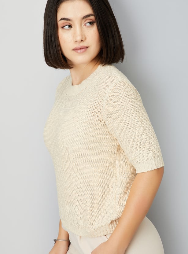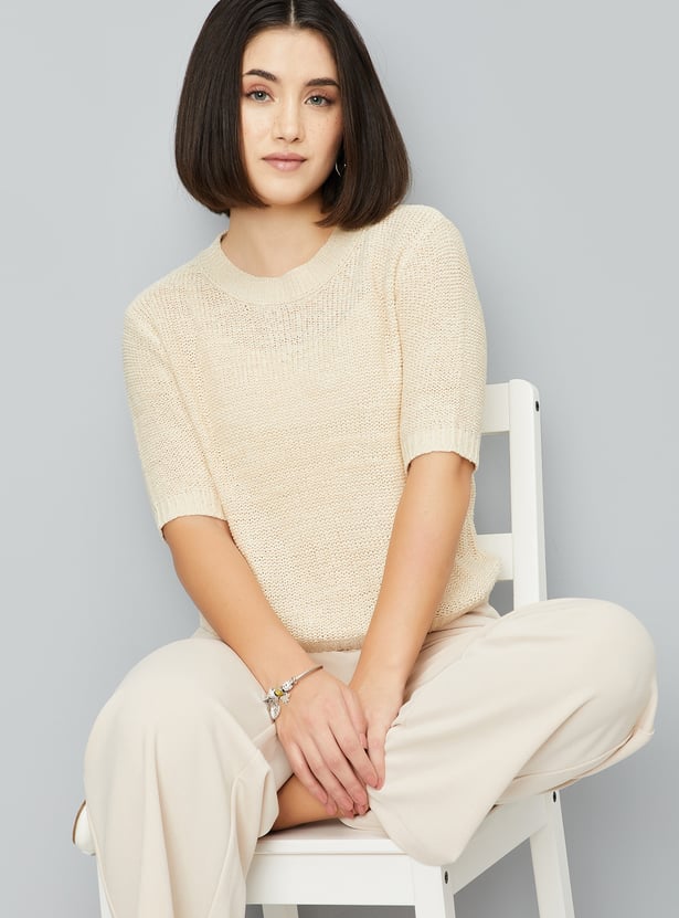 Embrace timeless comfort and style with this top. Featuring a classic round neck and half sleeves, this top is perfect for layering or wearing on its own. The ribbed detail around the neck, sleeves, and hem adds texture and a touch of modern flair to the minimalist design.