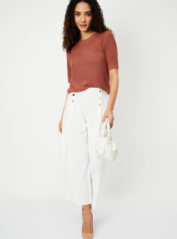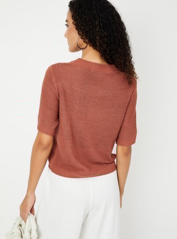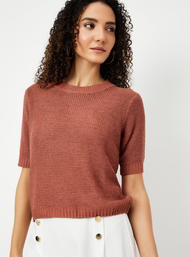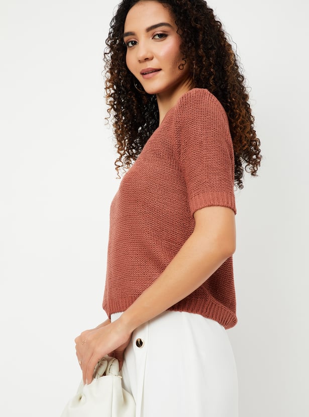 Women Knit Textured Top with Ribbed Detail