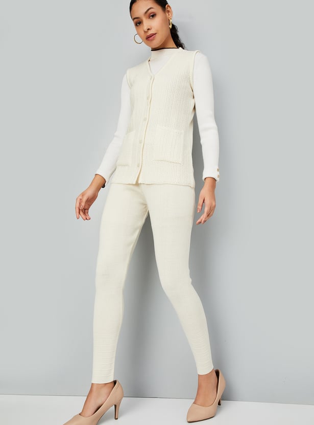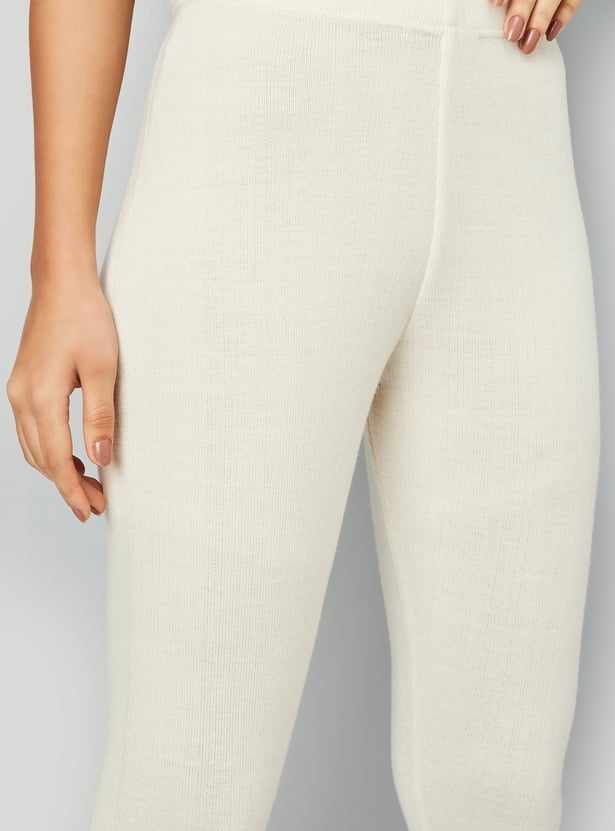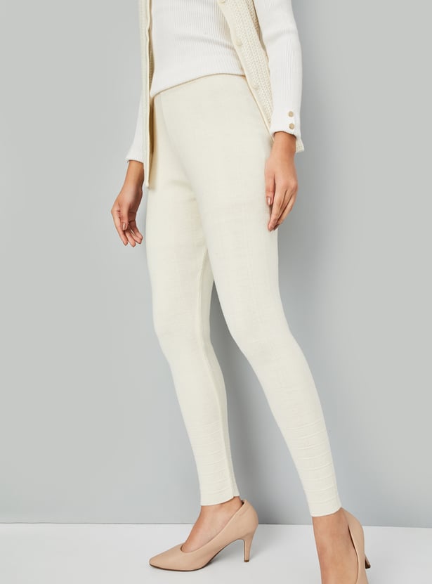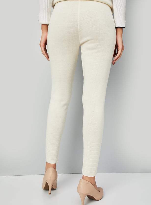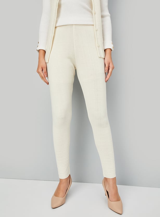 Embrace seasonal elegance this winter with these knitted leggings, featuring a solid pattern and an elasticated waistline. A stylish staple that combines warmth and sophistication.