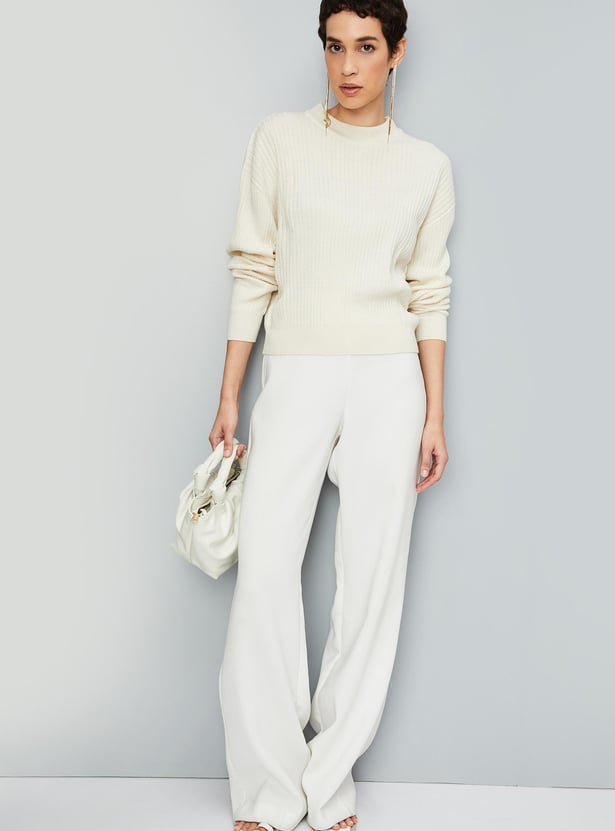 Women Knitted Ribbed Hem Sweater