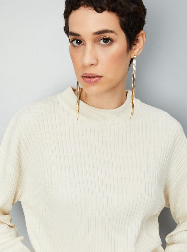 Set yourself for winter with this sweater featuring a mock collar, full sleeves, and ribbed hem. Style it with a pair of jeans and sneakers for a trendy look.
