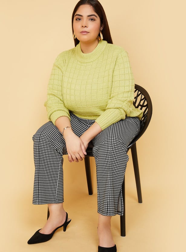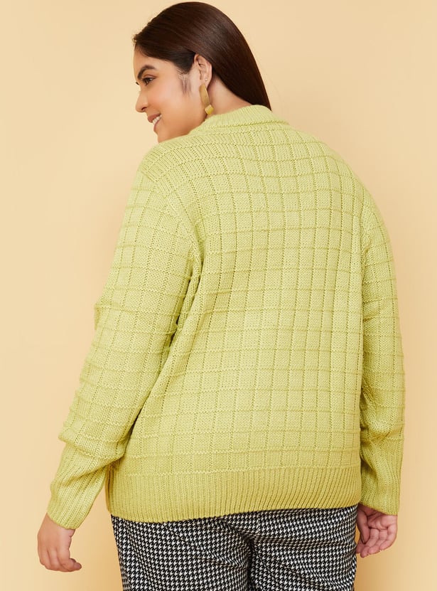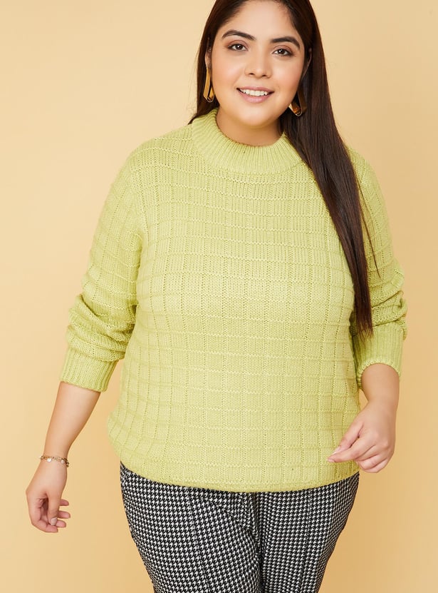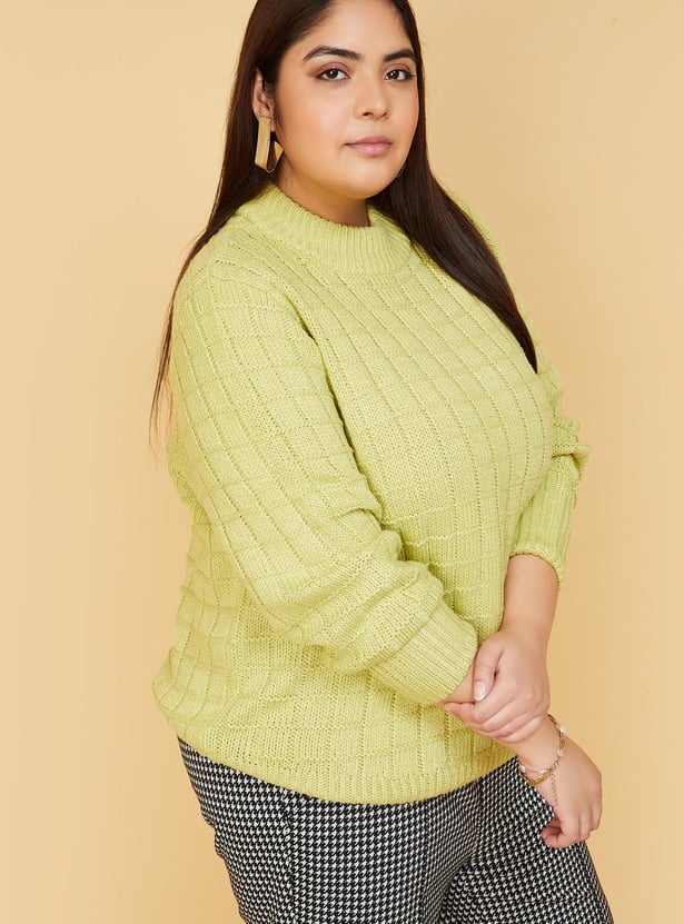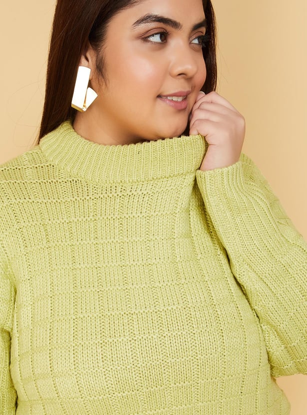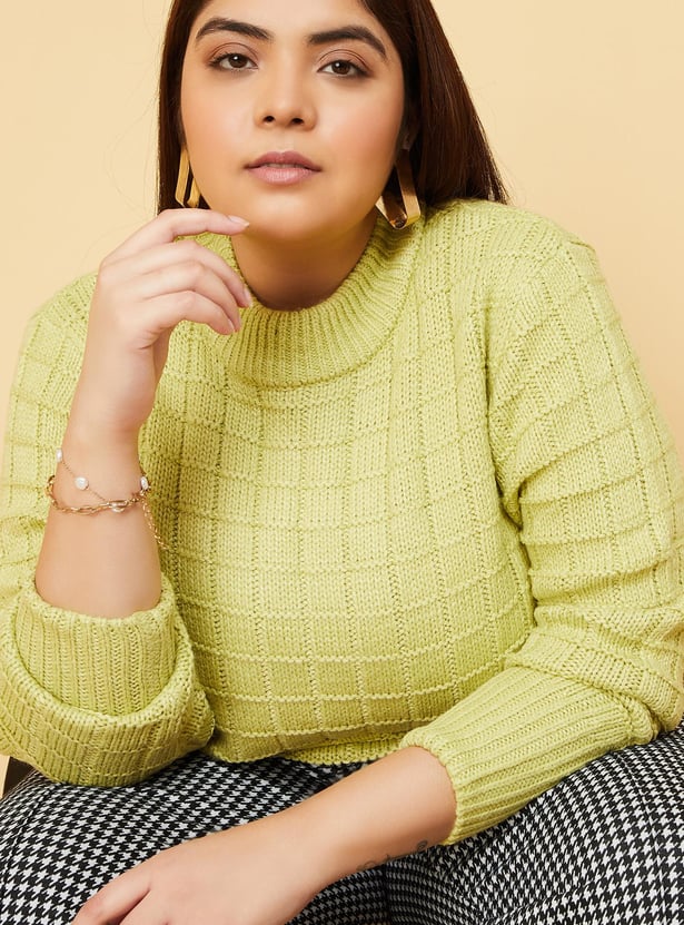 Make your winter outing cosy and stylish with this knitted sweater. It flaunts a mock neck and full sleeves. It looks best when teamed with a pair of trousers and chelsea boots.