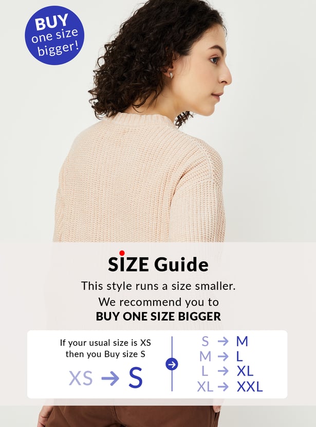 This cosy knitted sweater features a classic round neck, full sleeves, and a ribbed hem for added comfort and style. Its timeless design makes it perfect for layering or wearing on its own during cooler days.
