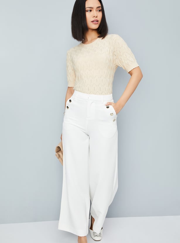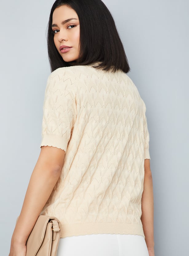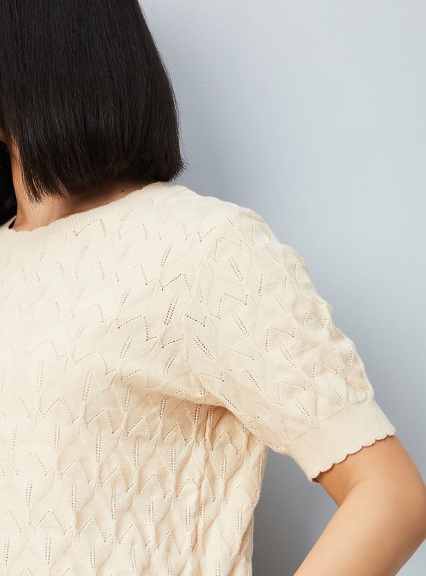Level up your basics with this knitted top! Featuring a round neck and half sleeves, it offers a comfy, stylish fit that's perfect for layering or wearing on its own.
