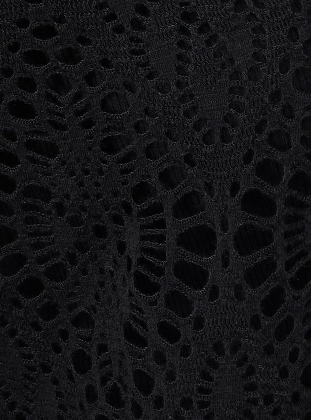 This lace shrug features delicate design, full sleeves, and an open front. Lightweight and versatile, it adds sophistication to any outfit, making it a stylish wardrobe essential.