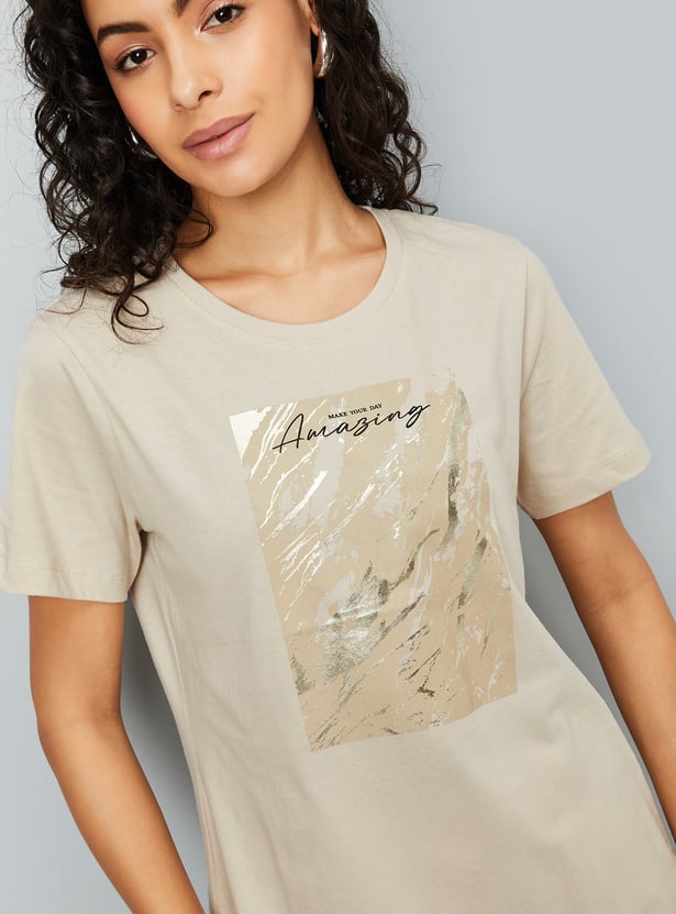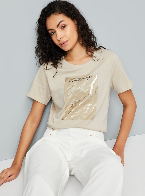 Women Metallic Printed T-shirt