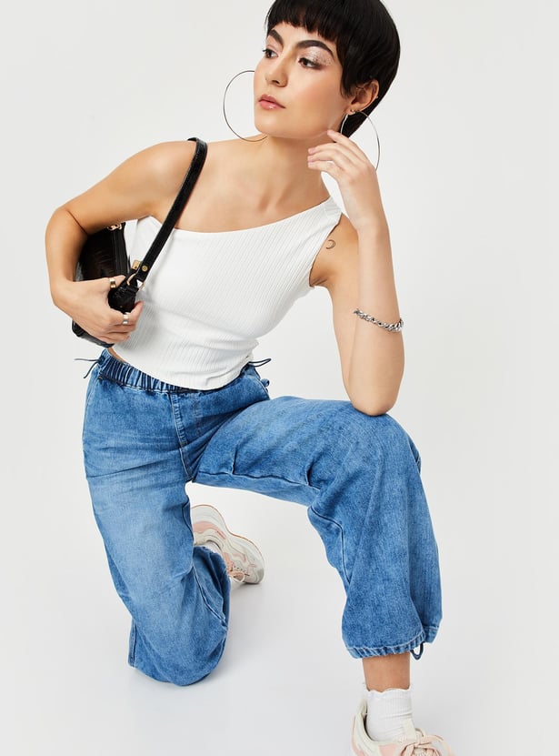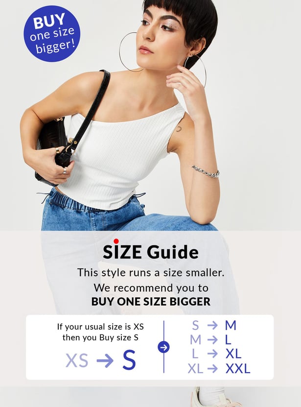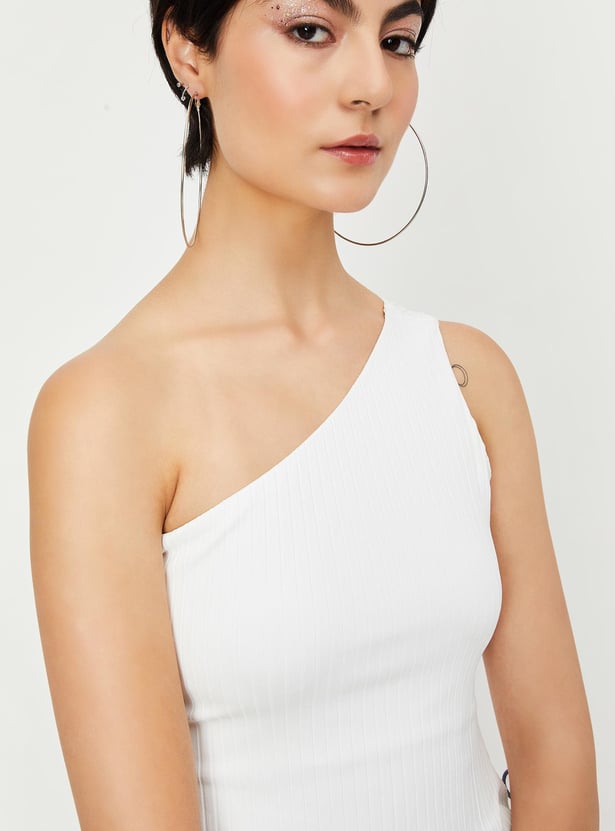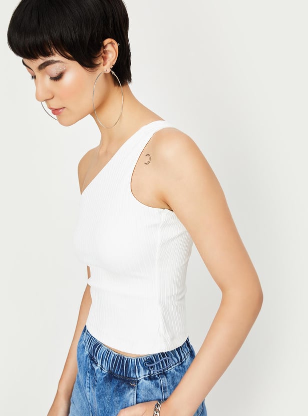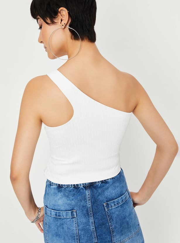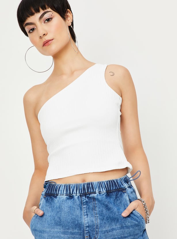 Amp up your style with this top featuring a ribbed surface, sleeveless construction and a one-shoulder neck making it a perfect casual pick. Team this top with shorts and sneakers.