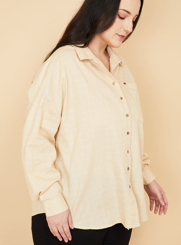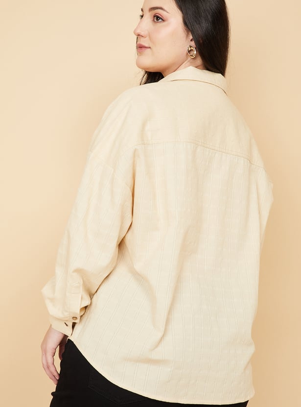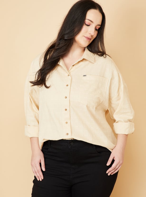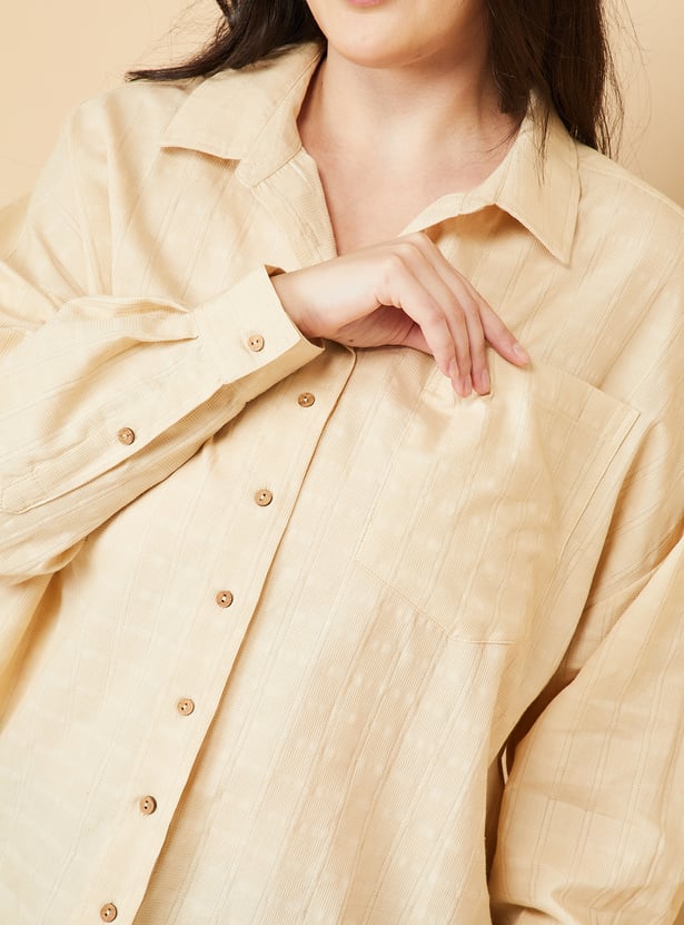 Add a relaxed yet stylish touch to your wardrobe with this shirt. Designed with a spread collar, full sleeves with buttoned cuffs, a patch pocket, and a curved hem, it combines classic elements with a modern silhouette. The oversized fit offers comfort and easy layering, while the checked pattern adds intrigue. Model Size :