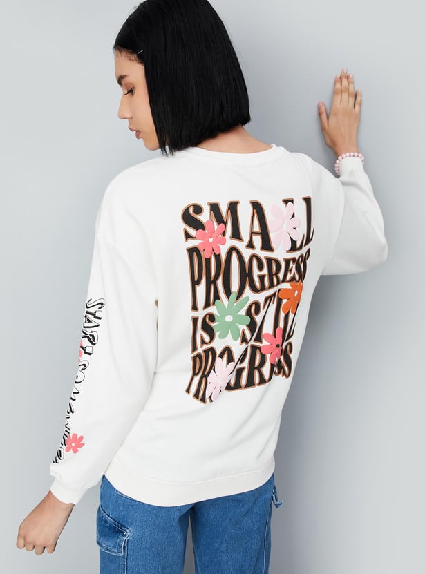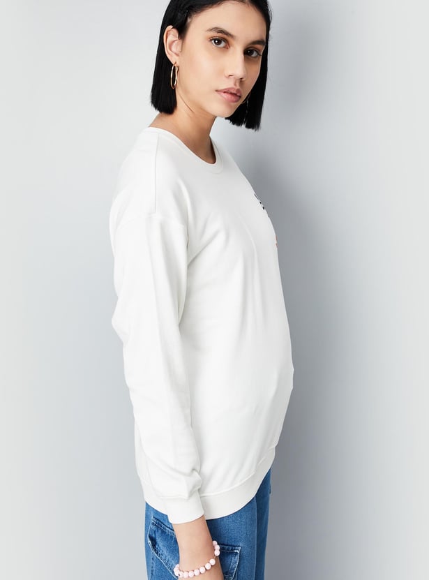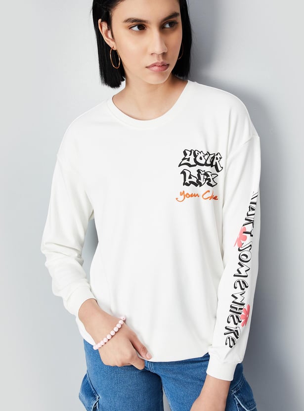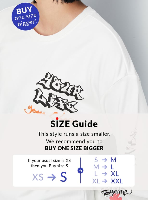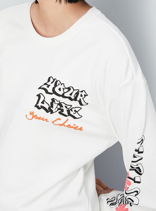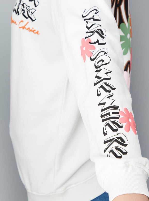 Stay warm this winter with a stylish sweatshirt that features a graphic print, full sleeves, a round neckline, and a ribbed hem. For a comfortable and cosy look, pair this sweatshirt with joggers and lace-up shoes.