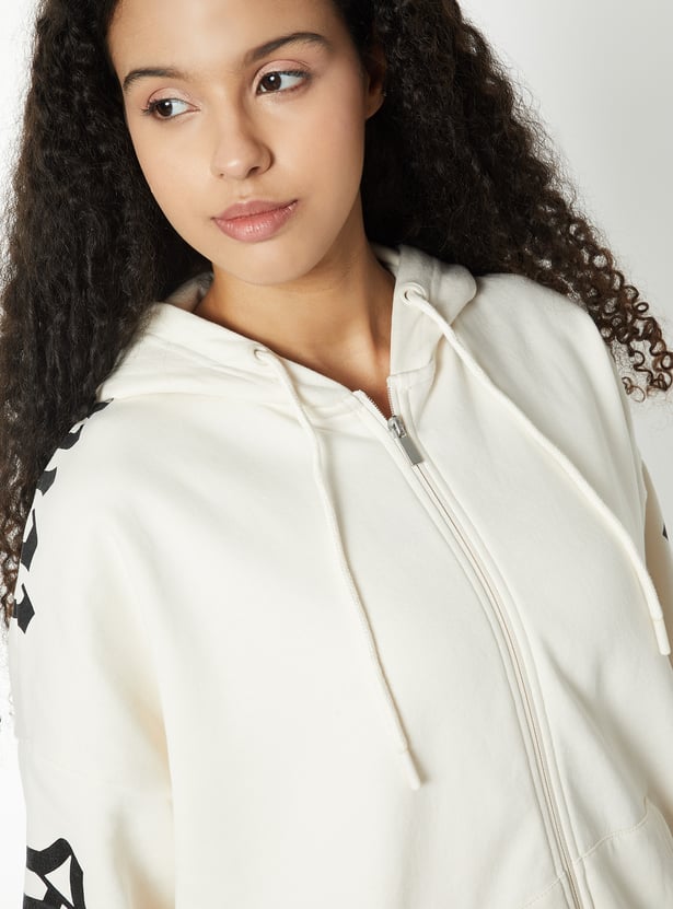 This oversized printed sporty jacket features a relaxed silhouette that blends comfort with statement style. Designed with a zip-up front, cozy hood, and side pockets, it adds a bold, athletic edge to casual outfits.