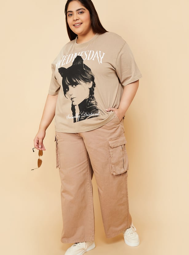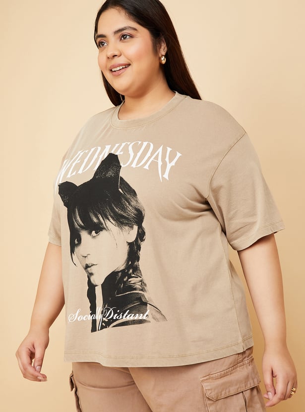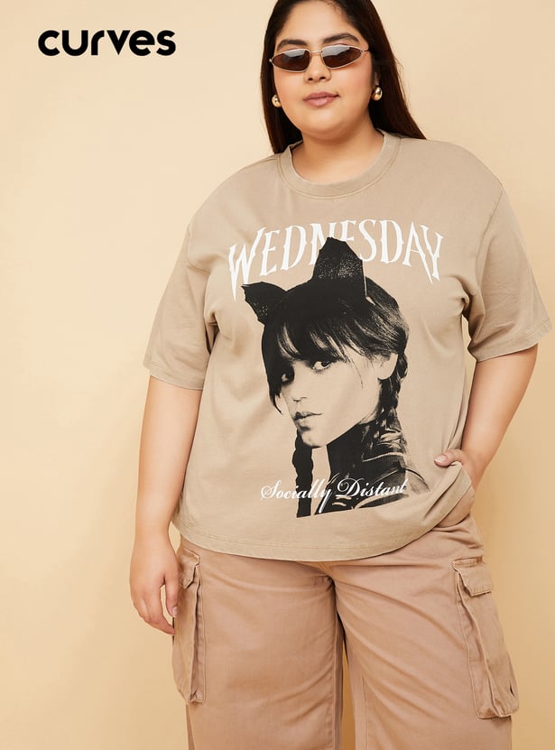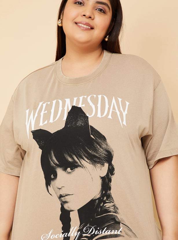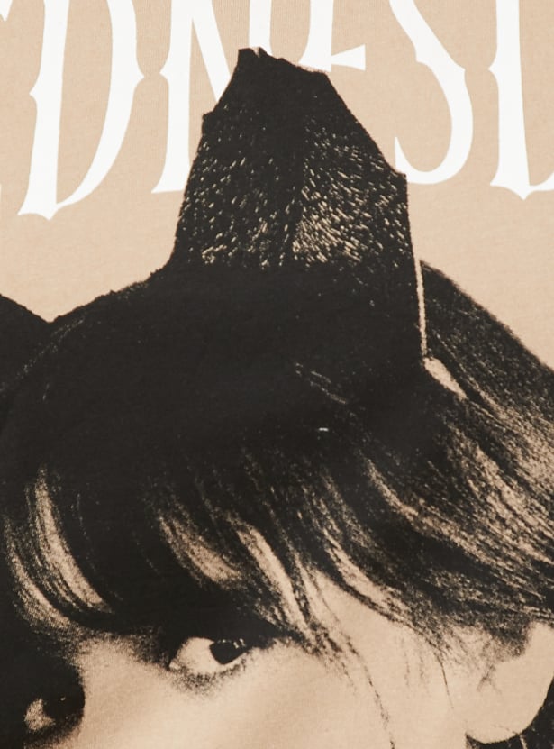 Add a magical touch to your day with this enchanting T-shirt. The Wednesday print adds an alluring flair, while the design features a round neck, drop shoulders, and half sleeves. Make a bold statement with this oversized T-shirt, perfect for a relaxed, casual look. Model Size :
