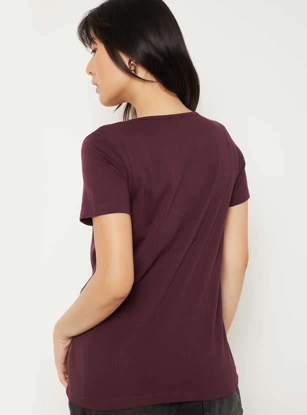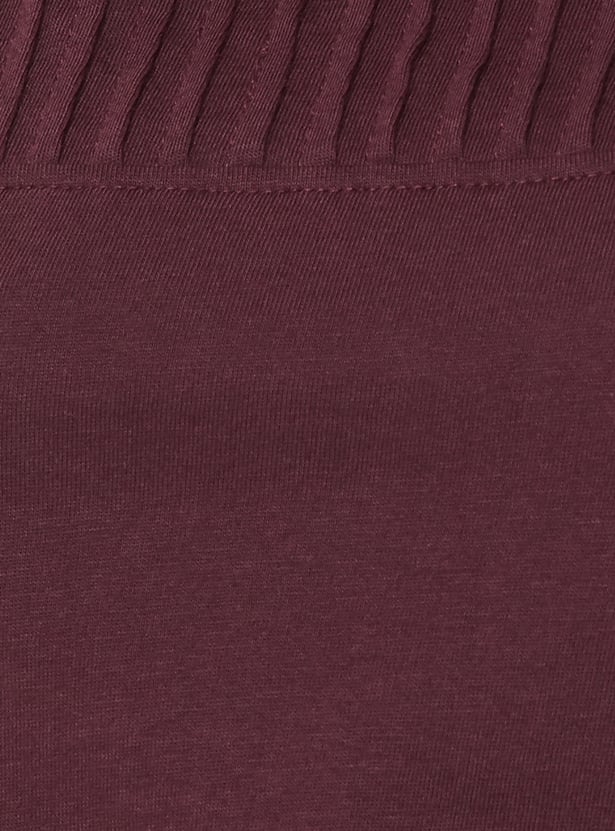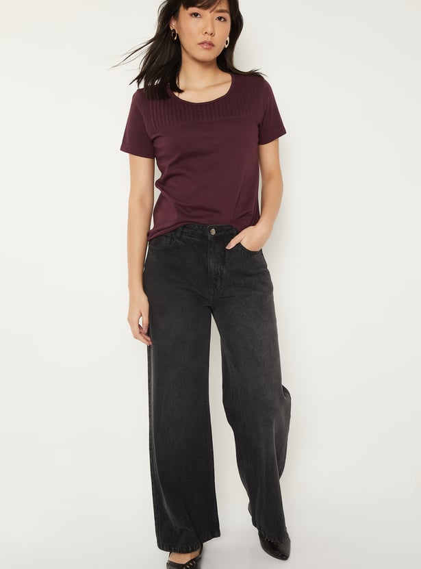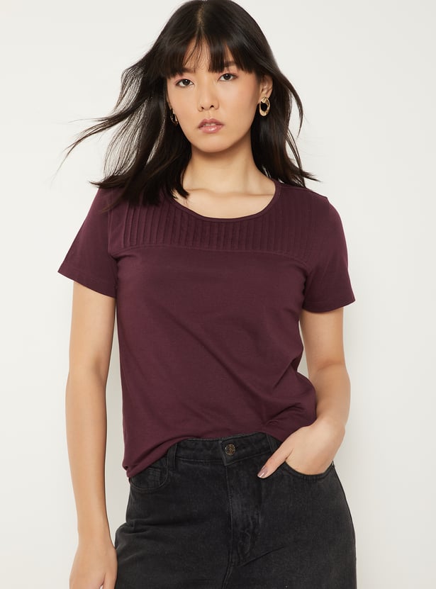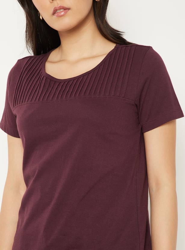 A chic pintuck T-shirt featuring a classic round neck and comfortable half sleeves. Designed with subtle texture for an effortlessly polished look. Model Size :