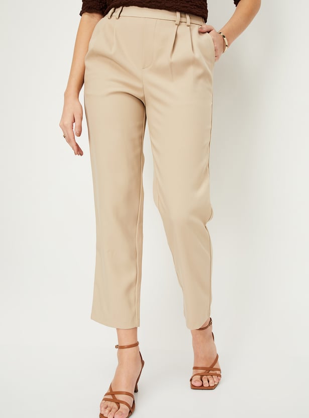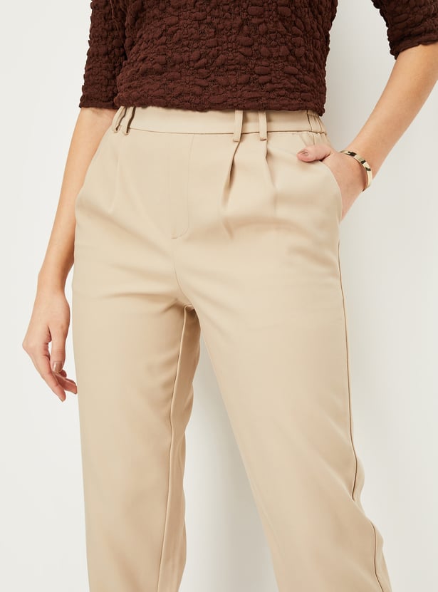 Exude confidence in these classy, straight-leg, regular-fit formal trousers. Featuring a sleek solid surface with a front-pleated design. They come with two convenient side pockets and an elasticated closure for a perfect fit. These trousers offer a refined look, ideal for radiating sophistication.