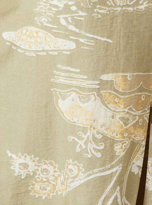 Turn heads with this printed knotted A-line dress, designed with a flattering v-neck and half sleeves. The midi length and asymmetric hem add a playful, modern twist to its elegant silhouette.