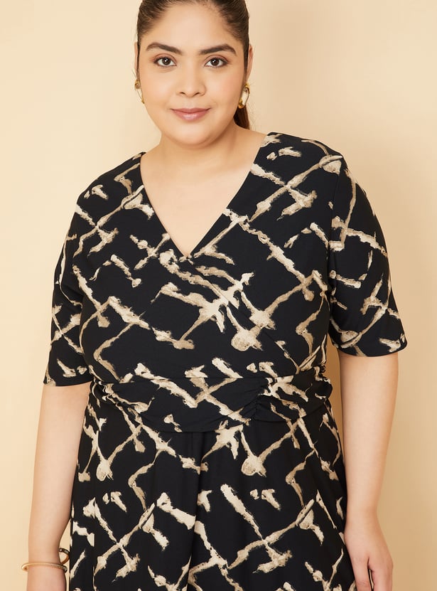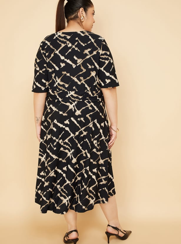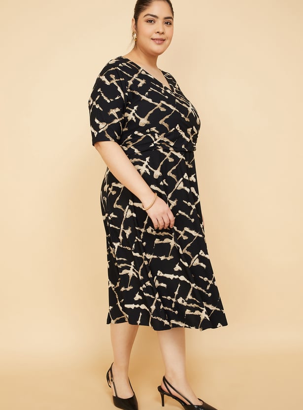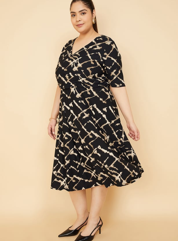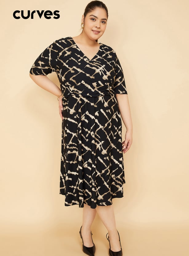 Step into effortless elegance with this printed A-line dress. Designed with a flattering V-neck and half sleeves, it combines comfort with timeless style. The A-line silhouette offers a graceful flow, while the midi length makes it versatile for both casual outings and semi-formal occasions. Model Size :