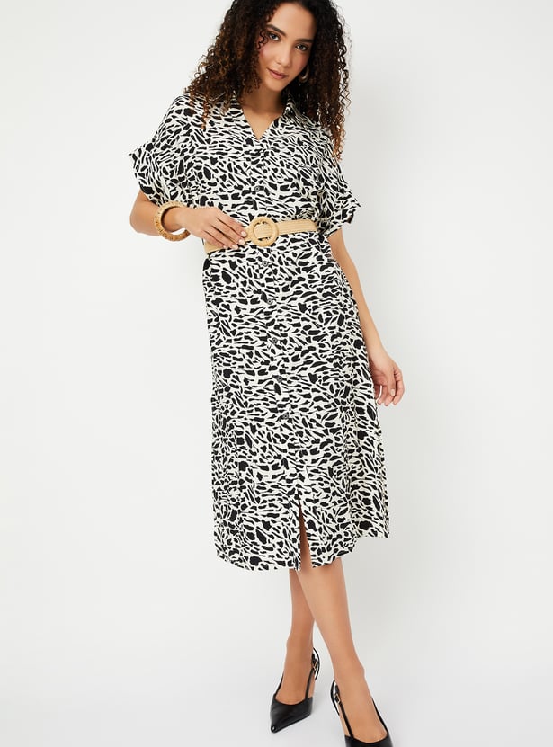 Women Printed Belted Shirt Dress