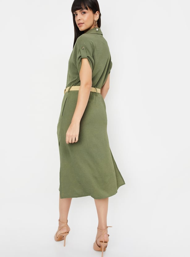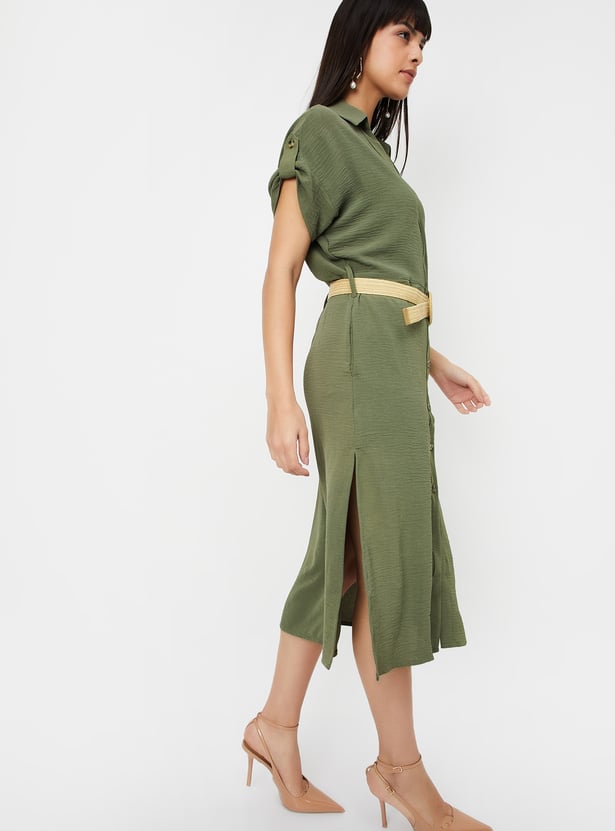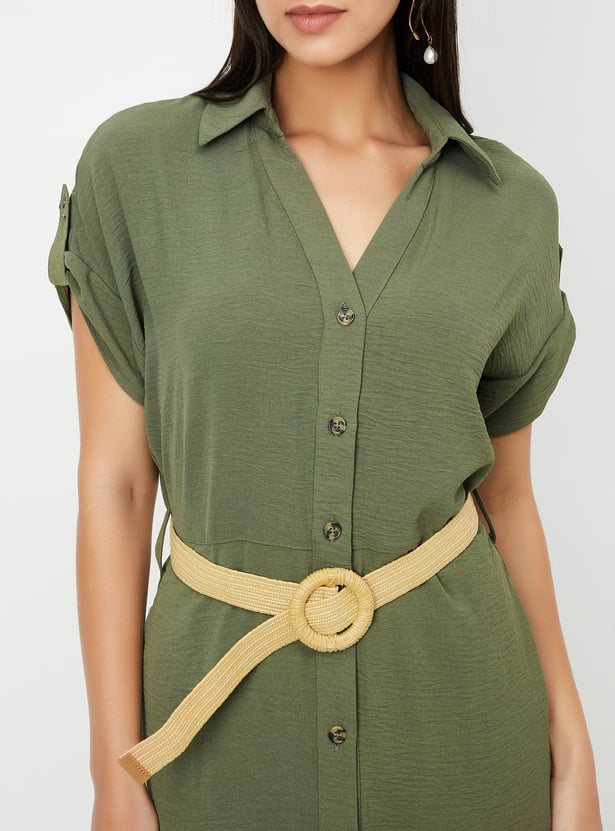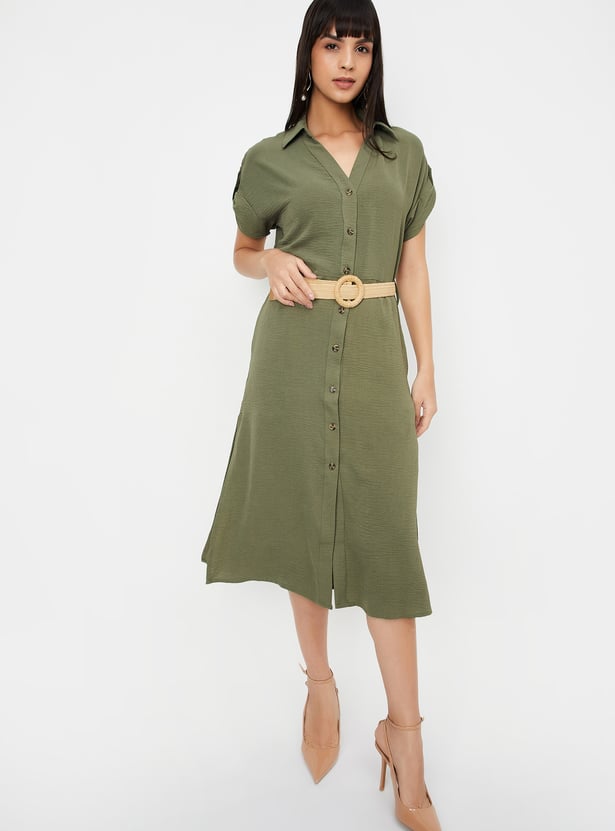 Elevate your style with this printed belted shirt dress, offering a perfect blend of comfort and chic design. Featuring half sleeves for a relaxed fit, a spread collar for a classic touch, and a button placket for a timeless finish, this dress also includes a side slit for added flair. Model Size :