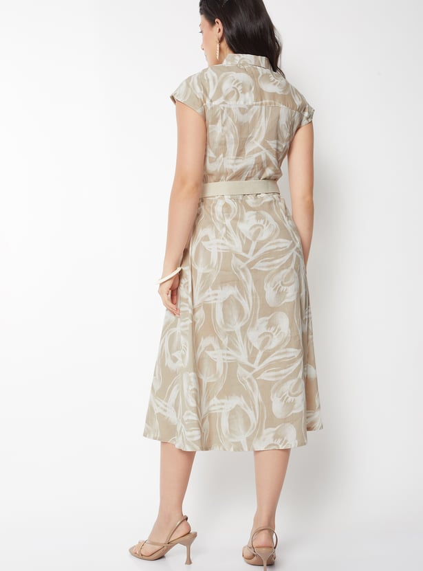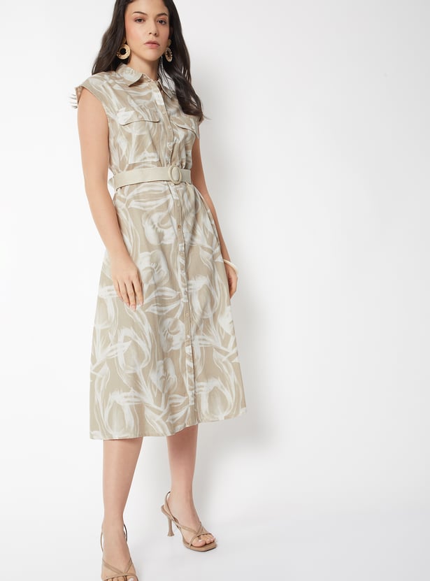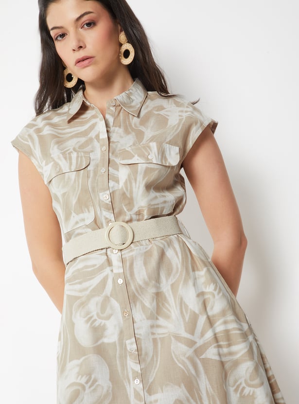 Women Printed Belted Shirt Dress