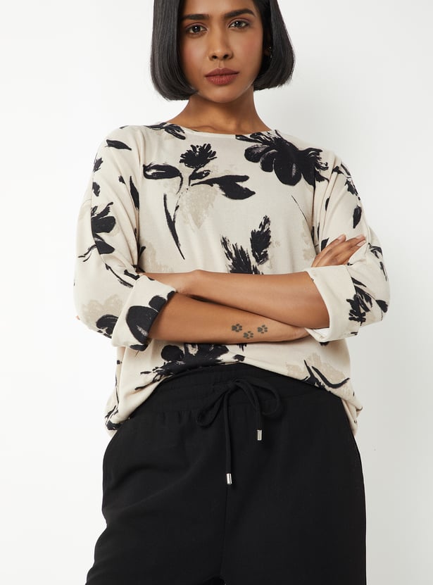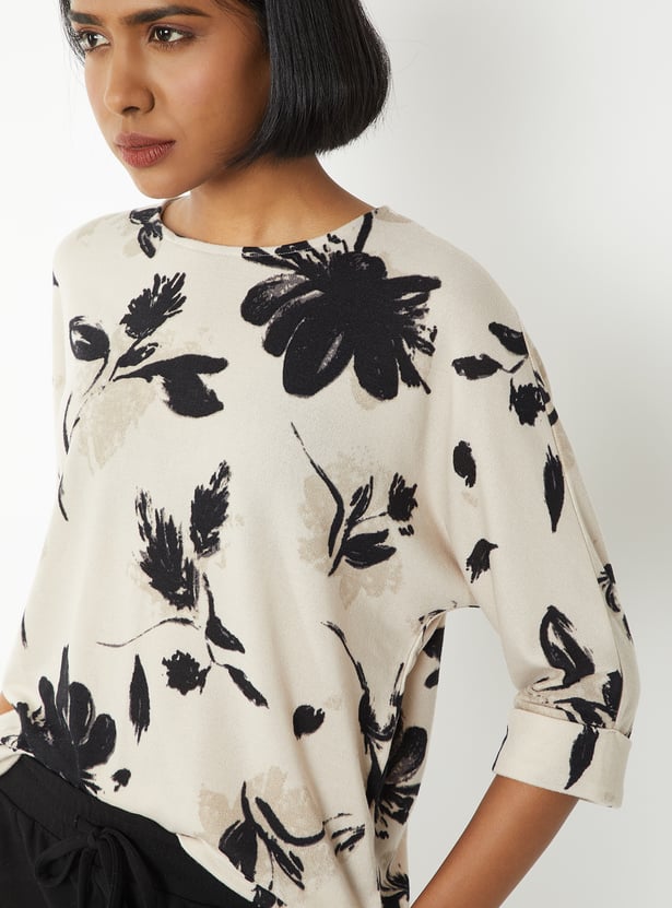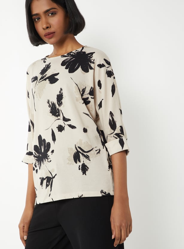 Step out in effortless style with this printed blouse, featuring a round neck and 3/4th sleeves for a chic, comfortable fit. Model Size :