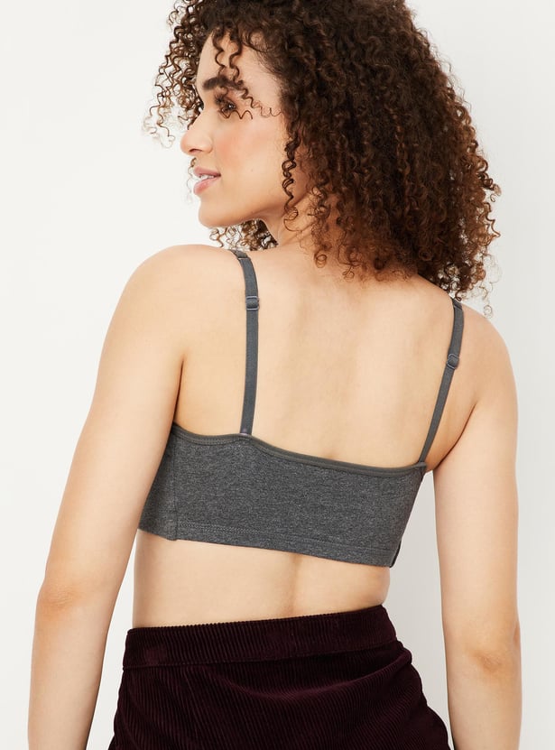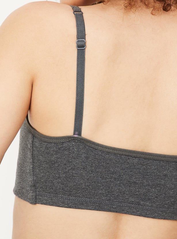 Stay comfortable with this pack of bras. It includes 2 cami bras with attached straps, a scoop neckline and an elasticated hem. This pack includes a solid bra and a printed bra.