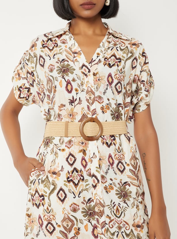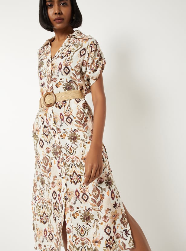 Women Printed Midi Dress with Belt
