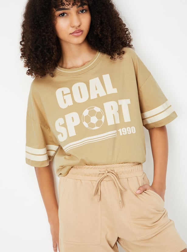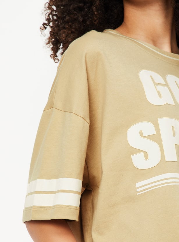 Elevate your casual style with this printed oversized T-shirt. Featuring a classic crew neck, drop shoulder design, and half sleeves, it offers a relaxed fit and effortless style. Model Size :