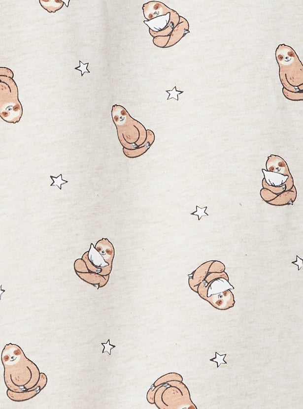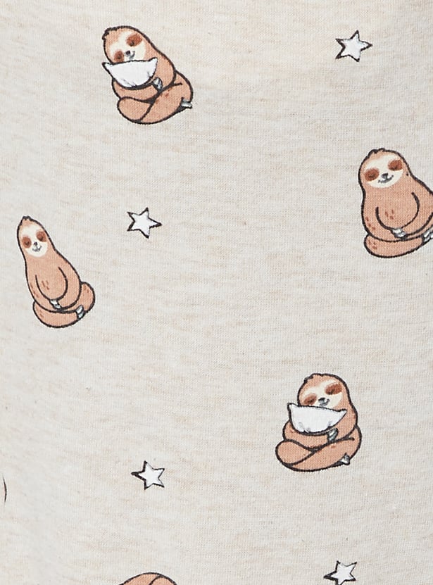 This printed pyjama set is designed for ultimate comfort and style. It includes a round neck, half-sleeve printed T-shirt paired with matching pyjamas featuring an elasticated waist, adjustable drawstring, and convenient side pockets for added ease.