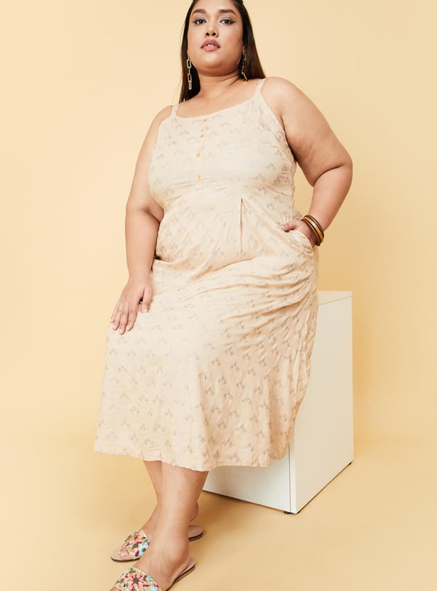 Women Printed Scoop Neck Ethnic Dress